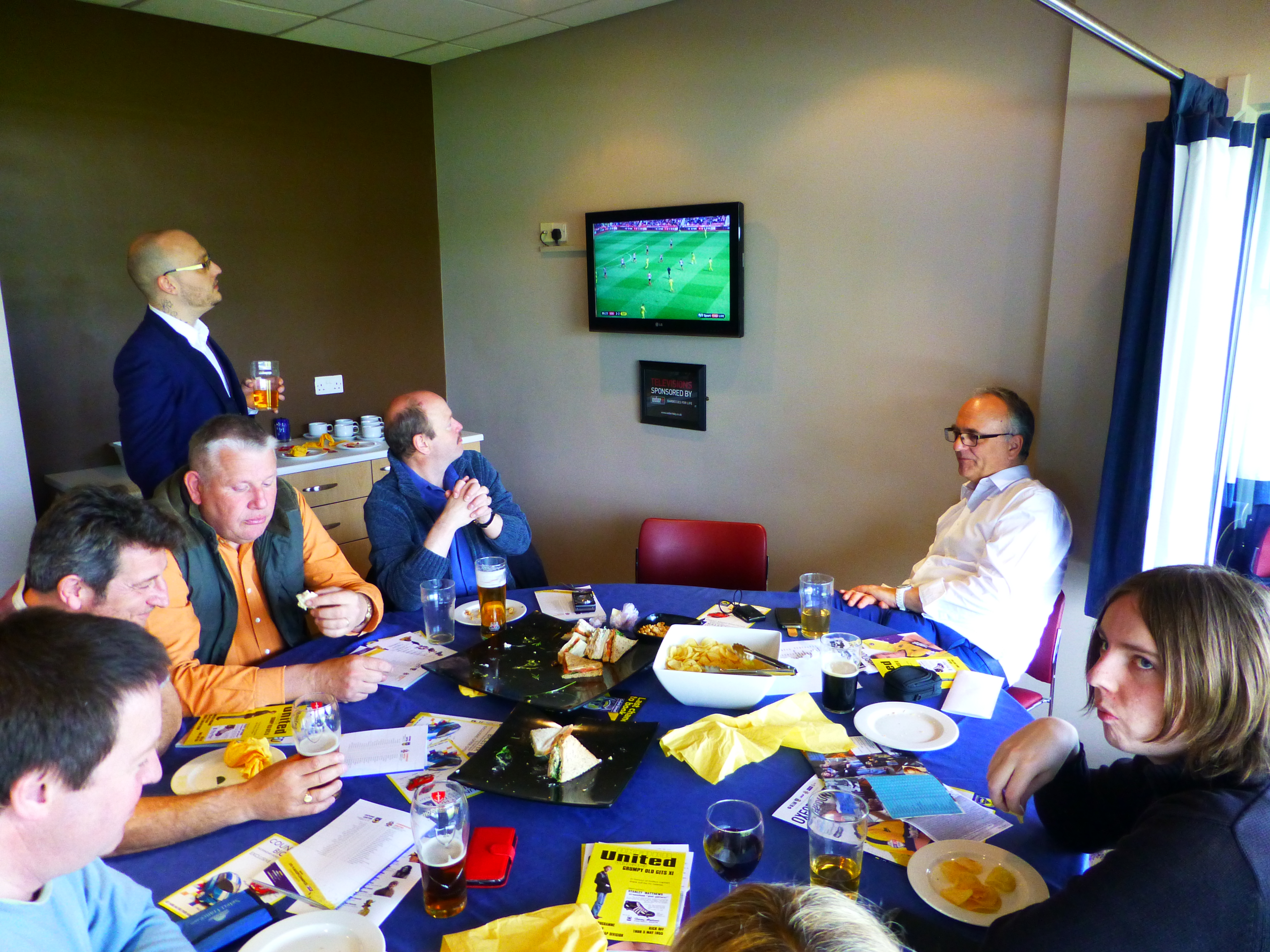 The first drink in the Eagle and Child just before midday wasn’t the easiest to get down but things improved thereafter. By now I’d kind of twigged what was going on as faces of mates and family who follow the yellows were in evidence. Mrs F V had booked a box and stadium tour at one o’clock. It was not until a little later that I realised I was match ball sponsor. All for a significant birthday and all arranged to military precision including a last minute change of plan here and there to, smoothly in my eyes, overcome a last minute challenge or two.