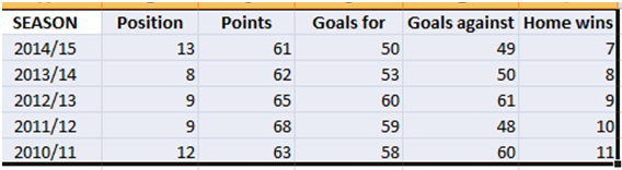 It goes without saying that we need to score more goals but the thing that really hits home is how we’ve got worse and worse at home. This trend has to stop if we are to bring the punters back and make the top 3 or 7. Take your pick depending on how optimistic you feel.