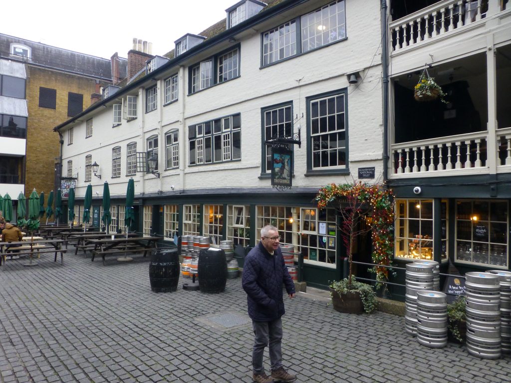 Having left early in case we encountered travel issues we were in Borough Market in good time but what a disappointment that turned out to be pub wise. We discovered that the Barrowboy & Banker and the Market Tavern didn’t open until midday. We couldn’t find the Rake and the choice of beer in the Old King’s Head, bloody Doombar and Tribute, had no appeal (picky or what?). So we ended up in the National Trust owned George Inn which is leased to Greene King. Interesting 17th century building and it did the job.