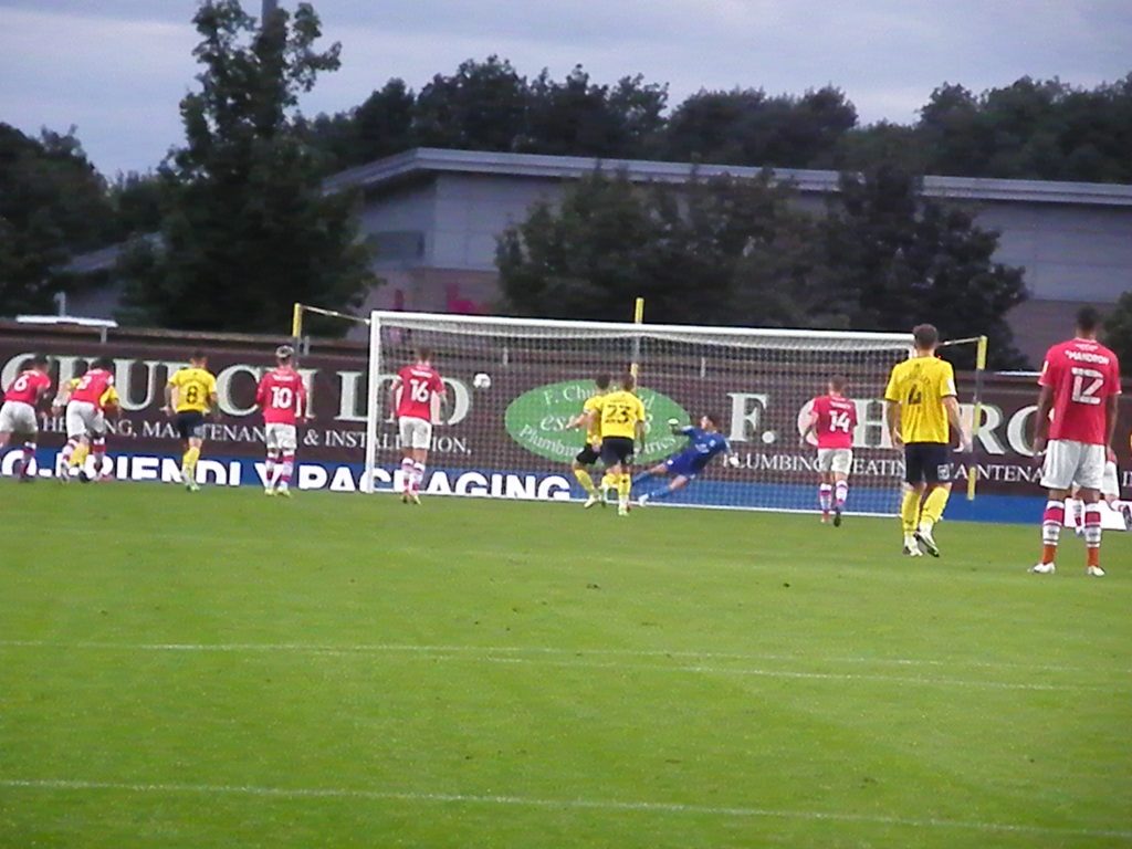 An utterly terrible cross field ball from Oliver Finney went straight to Bodin who took it on his chest knocked it past a defender and then angled a shot come pass wide that a fully stretched Taylor just couldn’t quite convert. A few degrees either way and it would have gone in, directly or via the boot of our no.9. We really should have gone two up though.