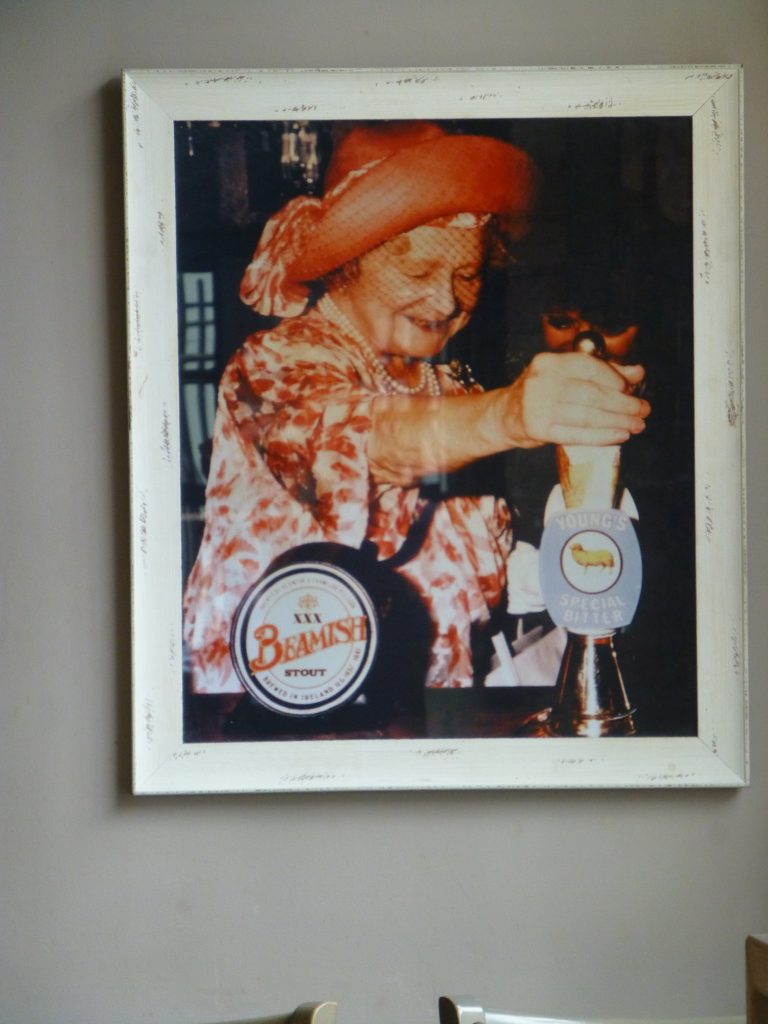 Back in the day it used to be a music hall venue and in the ‘50s and ‘60s Danny Kaye and Peter Sellers featured. In the ‘70s it was home to the Tooting Blues club and the Faces and Mott the Hoople have played there. On the wall there’s a picture of the dear old Queen Mum pulling a pint. Hope it tasted better than the ones we were served for which the cost was an outrageous nearly six quid.