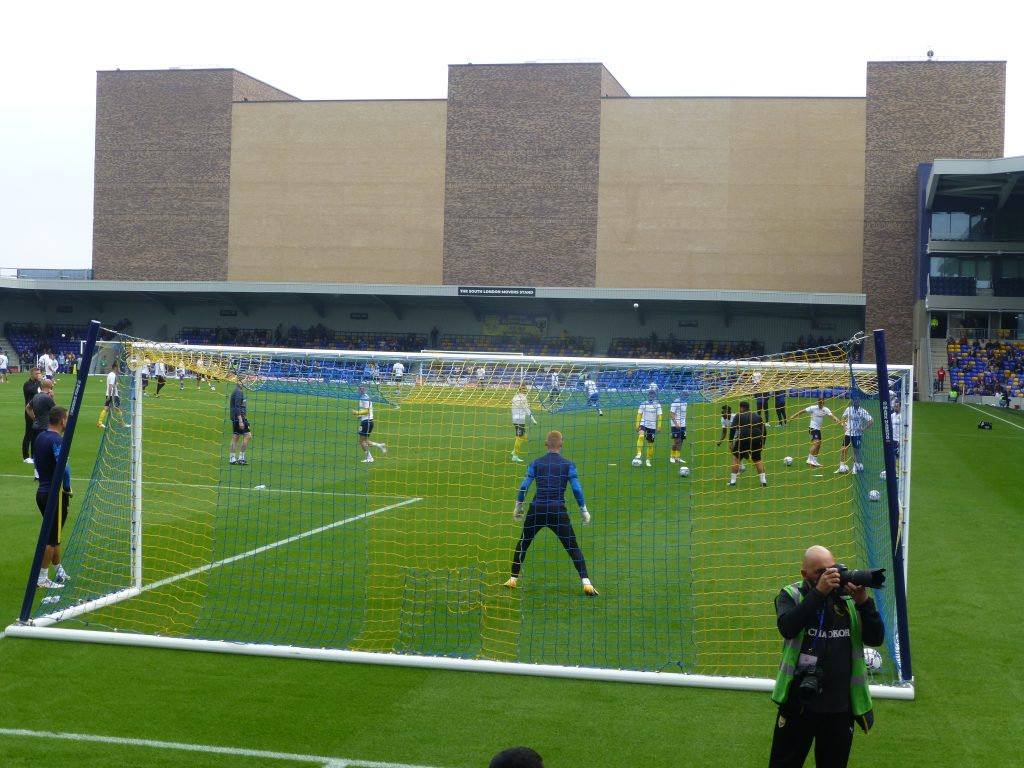 There’s no doubt it is a massive improvement on Kingston but I thought it quite disappointing. Even though it holds over 9k it looked rather small. Five rows from the front it was difficult to appreciate what was happening at the other end of the pitch. The seats we were sat in were screwed on to a metal structure that I am led to believe is just temporary and the huge windowless wall behind the home end is bland to say the least.