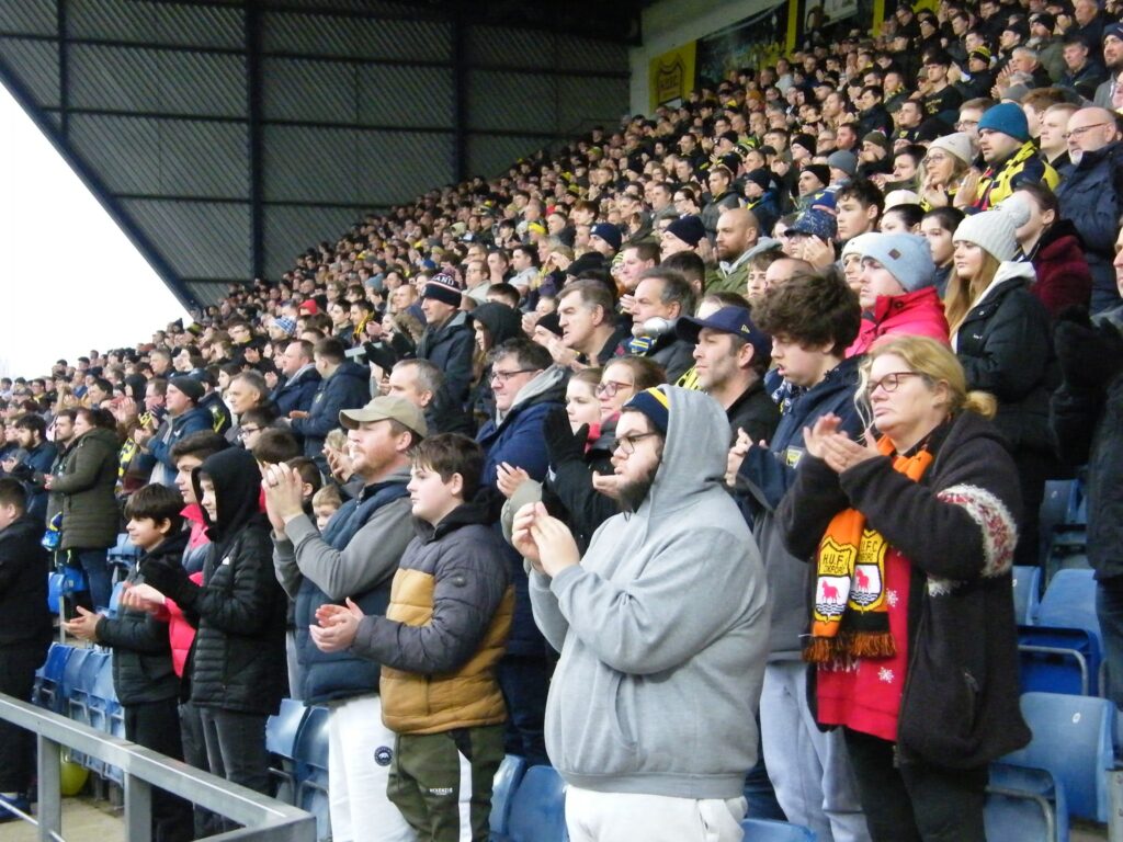 Oxford fans pre-match applause in memory of fellow yellows, players and official who left us during 2022. Photo Simon Jaggs