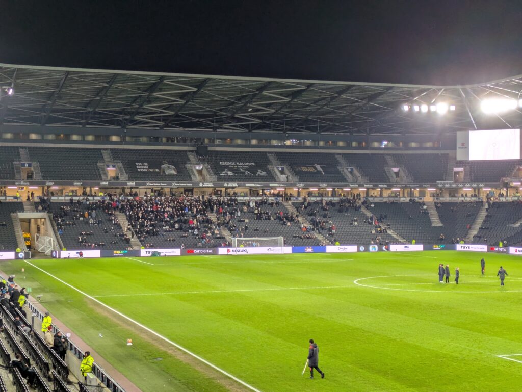 That we accounted for approx. a third of the gate is telling. MK’s average league attendance this season is 7790 which is 1888 more than turned up here. I’d guess at highly discounted season tickets tempting supporters who are not that committed but I could be wrong.