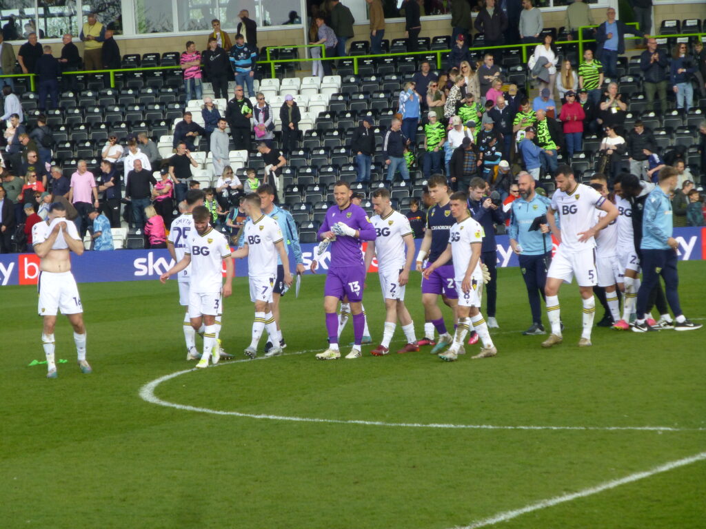 After our survival had been confirmed the FGR players returned to the pitch to give the traditional thanks at the last home game of the season to their supporters. There were a few of them left in the ground at the time. Futile or what? There was probably as many travelling Oxford fans in the home section at the time.