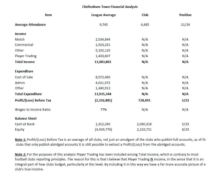 Cheltenham Town Financial Analysis by Colin Barson
