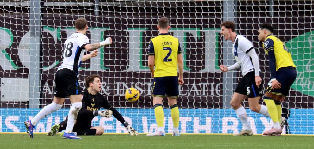 Jamie Cumming is beaten by a Myles Peart-Harris deflection for Birmingham’s first goal (Photo: Steve Daniels)