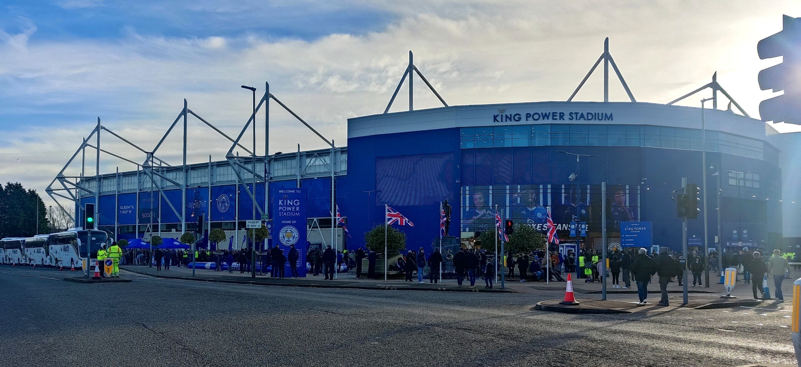 A short walk to the Jewry Wall – apparently the largest free-standing remains of a Roman wall in the country – and then a pleasant walk along the River Soar, complete with a plethora of swans, to the Soar Point sports bar. From there is was just a further ten minutes on foot to the King Power Stadium, walking past the side of Leicester’s former Filbert Street ground en route.