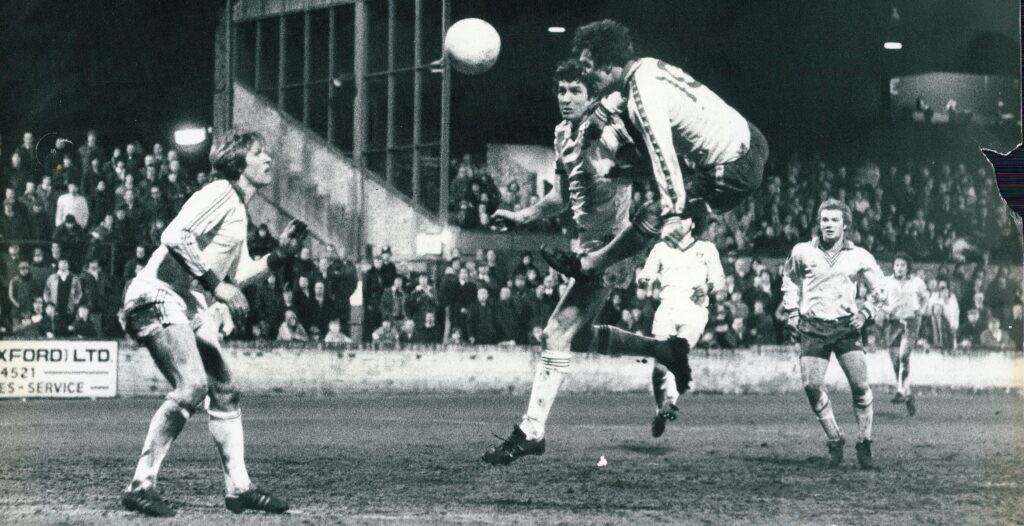 Hugh Curran scores against Wrexham in March 1978
