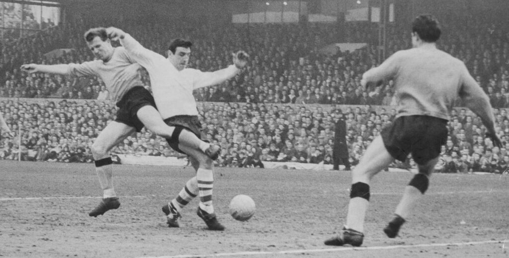 United and Preston in FA Cup quarter-final action at the Manor in 1964